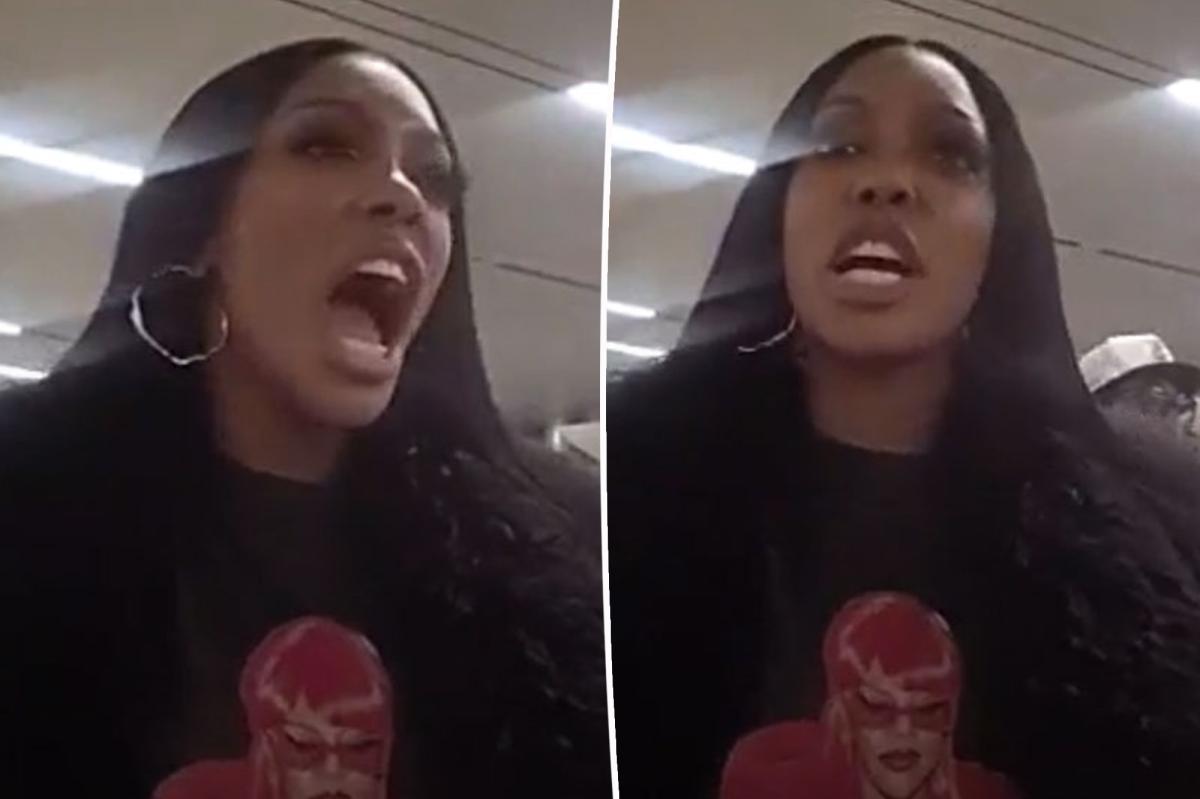 In the clip, the “Real Housewives of Atlanta” star claims the incident was prompted after another passenger sitting next to her on the flight called her a “bitch.”