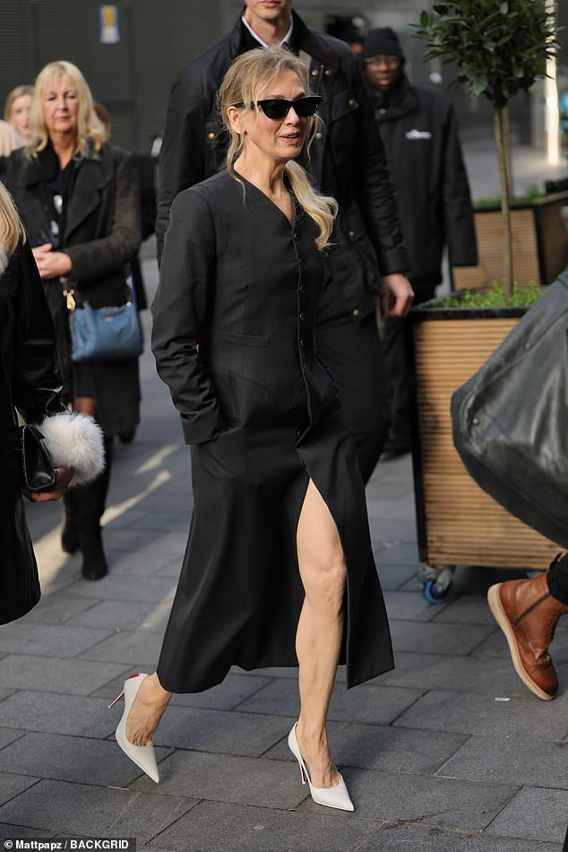 Renée Zellweger showed off her lithe legs as she stepped out in London to unveil a statue of her most famous character Bridget Jones