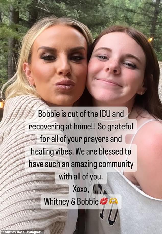 Whitney Rose shared the good news her daughter Bobbie, 14, had been released from the hospital and was ‘recovering at home’ after experience severe asthma exacerbation earlier this week