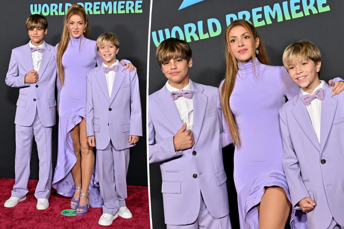 Shakira doesn’t frequent red carpet events, so it’s particularly sweet that she not only brought her sons but also coordinated all their high-fashion looks for the family-friendly screening.