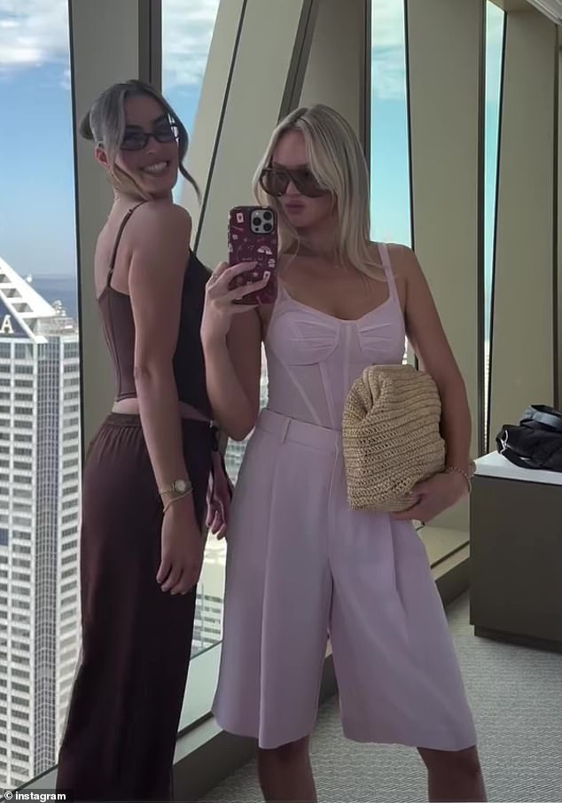 Opting for a blush pink ensemble, Jules was glowing as she posed alongside a friend in an Instagram Stories post.