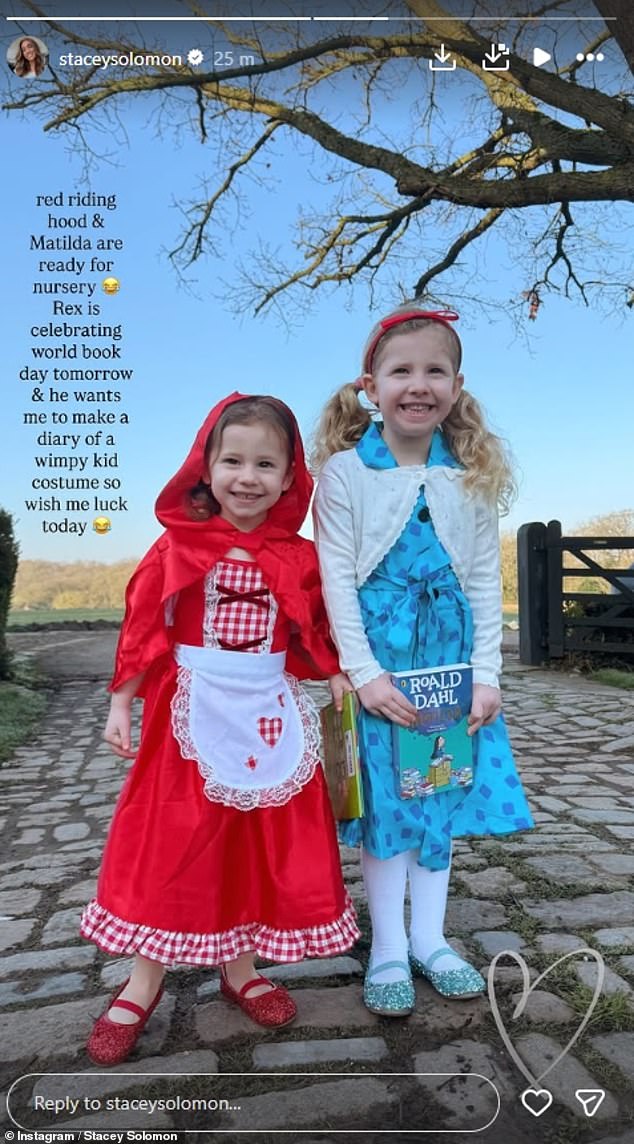 Stacey Solomon shared an adorable snap of her daughters dressed up as Matilda and Red Riding Hood as stars celebrated World Book Day on Thursday