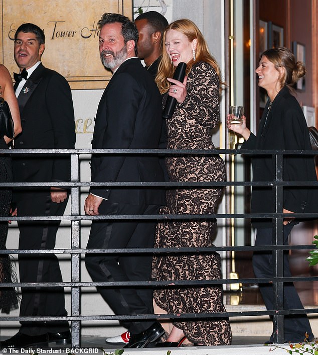 The couple appeared to be in high spirits as they exited party venue Sunset Tower Hotel after rubbing shoulders with fellow guests Jennifer Lopez, Nick Jonas, Priyanka Chopra and Paris Hilton.