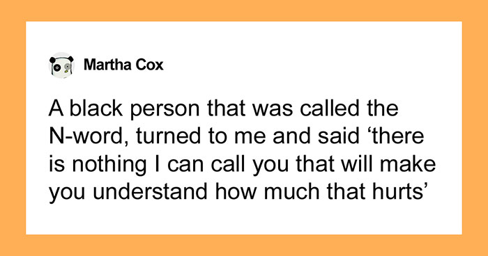 A black person I worked with was called the N-word by an angry customer. She turned to me and said, “there is nothing I can call you that will ever make you understand how much that hurts”. That completely changed my thinking.