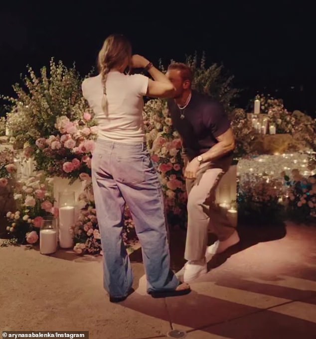 Sabalenka’s fiancé popped the question in a romantic outdoor setting, as they were surrounded by beautiful bouquets of flowers and tall, pillar candles.