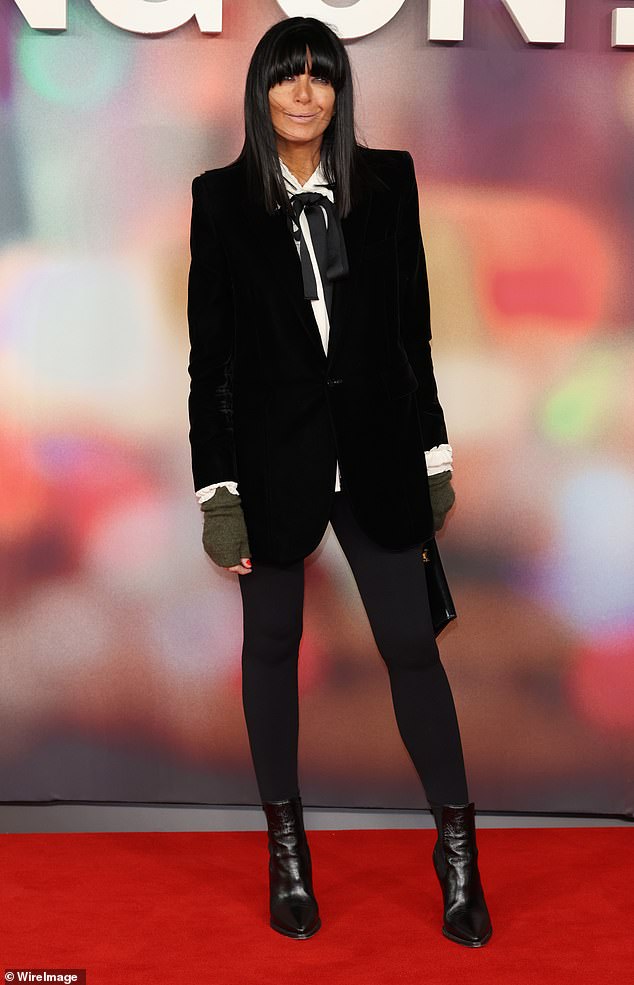 For the outing, Claudia wore black leggings, a classic white shirt and a tailored suede blazer. To accessorise her ensemble, the TV star paired her look with black, heeled, leather boots