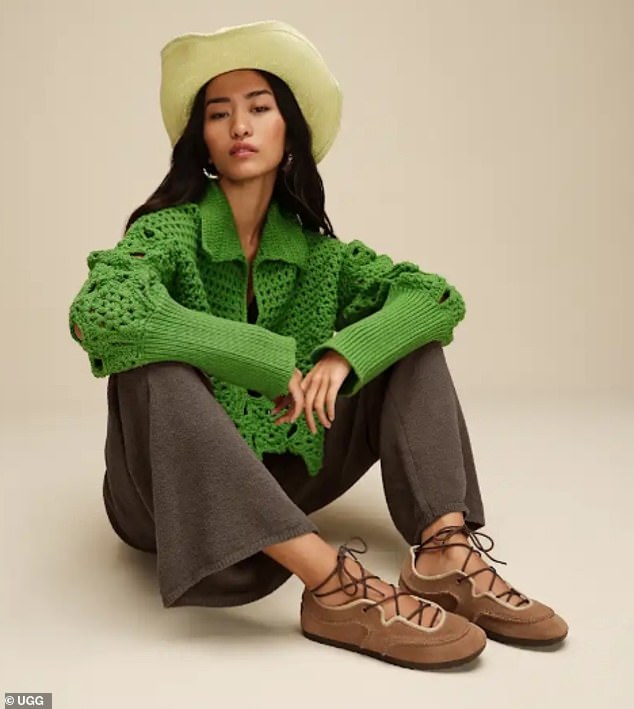 A hybrid shoe blending trainers and ballet shoes – sneakerinas – are on the rise (pictured is Ugg’s version)
