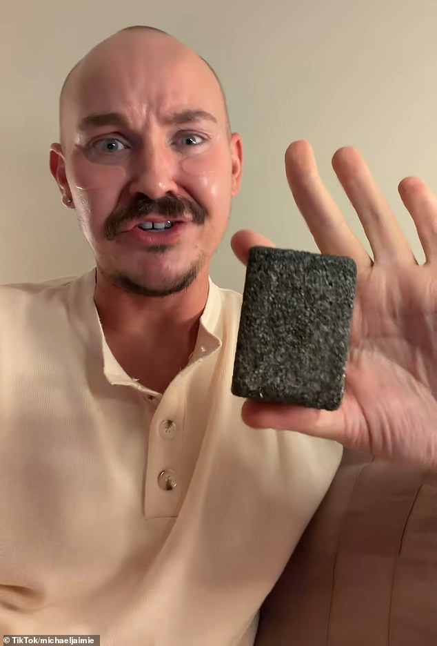 ‘This $4 rock is called a Chirobody sponge … it is one of those rare hidden gems that is still affordable,’ he said in a video.