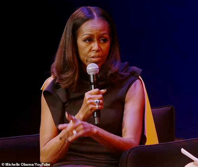 As she addressed the audience at the Brooklyn Academy of Music, Obama also said that there was a ‘lot of growing up to do’ in this country.