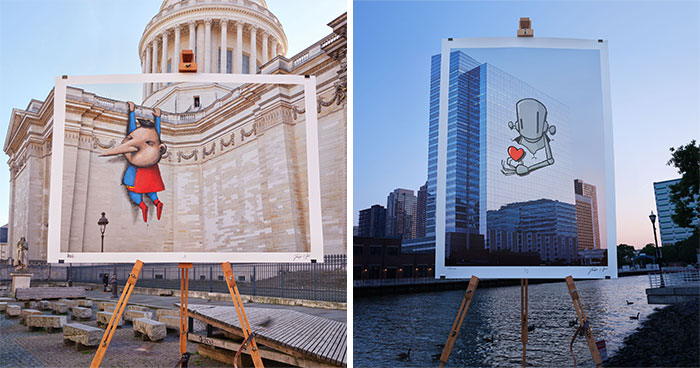 Street art is often shaped by the limitations of the real world: scale, safety, access, and the law all determine what can and cannot be painted. In Impossible Street Art, photographer Joseph Ford turns those limits into the very subject of the work. The series begins with Ford photographing buildings, industrial structures, and landscapes that seem to demand some kind of artistic intervention, yet are too large, protected, inaccessible, or politically sensitive for a street artist to work on directly. He then invites collaborators to paint straight onto large prints of those photographs, before re-photographing the finished pieces on an easel in the original location. The result is a striking illusion of a parallel universe, one where any surface can become a canvas, and where these interventions are created physically, not through CGI or AI. Ford has developed the project in collaboration with artists from around the world, including MadC, Sen2, Peeta, Alex Senna, Joe Iurato, Levalet, Guy Denning, Chris RWK, Ador, Antonyo Marest, Denis Meyers, Jan Is De Man, Skirl, Morley, and Victoria Villasana.