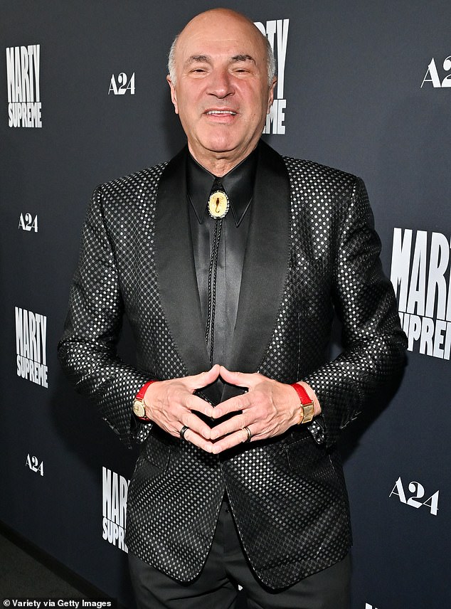 Timothee Chalamet’s character was smacked in the buttocks by a paddle in a scene for Marty Supreme – and his castmate Kevin O’Leary gave insight into the actor’s shocked reaction; O’Leary seen above earlier this month in L.A.