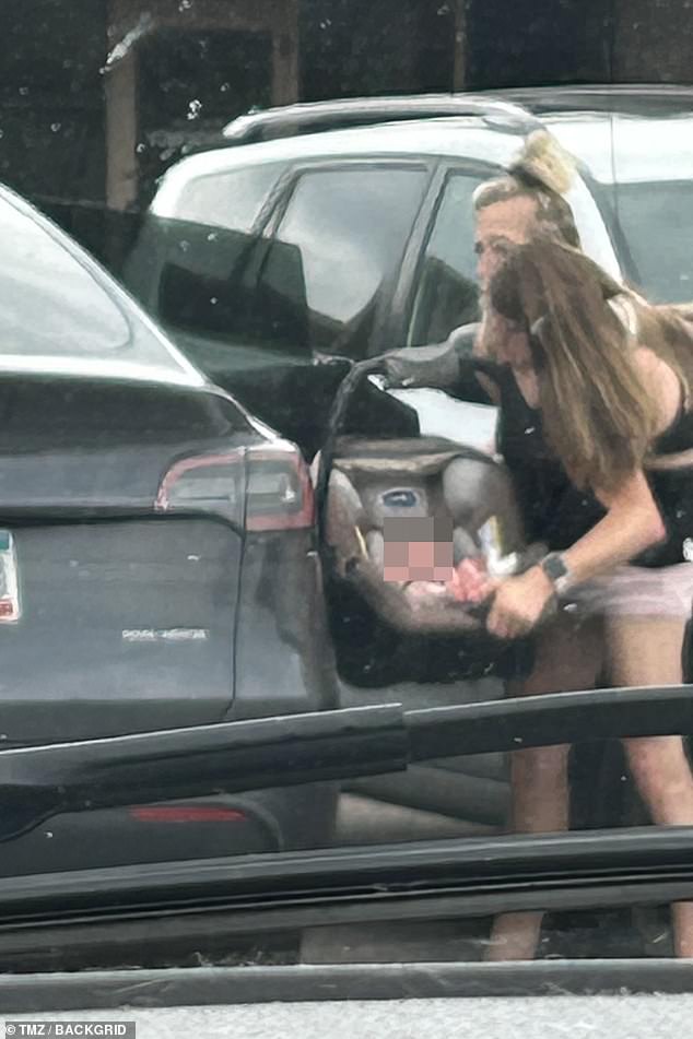 Abby and Brittany were snapped carrying a newborn baby in a car seat and placing the infant into the back of a black Tesla at a parking lot in Arden Hills, Minnesota last Thursday