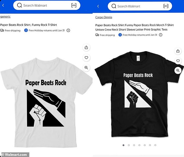Walmart have pulled the controversial ‘Paper Beats Rock’ shirts from their website after facing criticism that the graphics appeared to show a Nazi salute