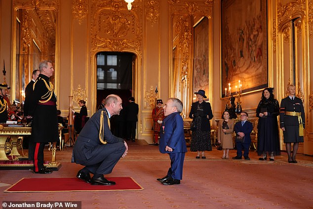 Arriving for the ceremony, Warwick was seen conversing with Prince William as he accepted the honour, with his mystery woman and his children watching on.