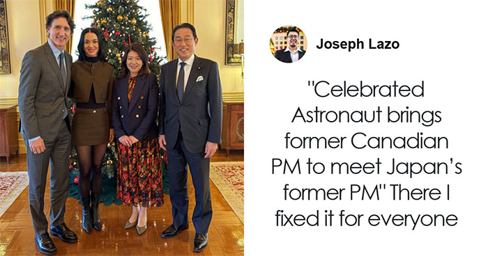 “‘Celebrated Astronaut brings former Canadian PM to meet Japan’s former PM.’ There I fixed it for everyone,” joked one user.