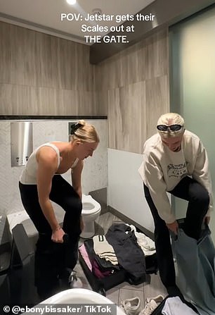 ‘POV: Jetstar gets their scales out at the gate,’ Ebony joked in the caption of her video.