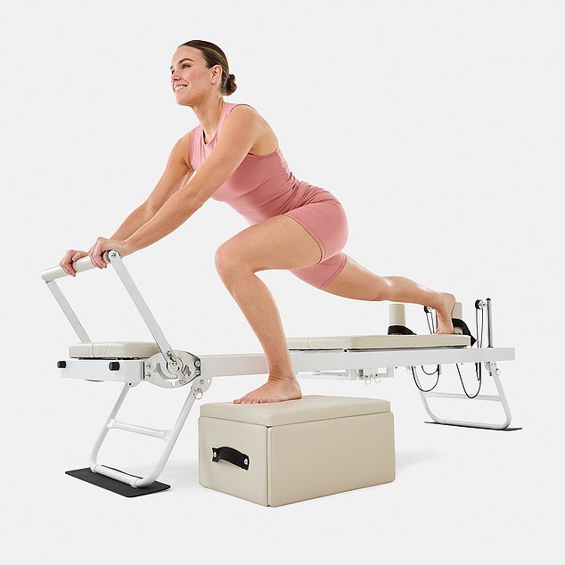 Returning in a new tan and white colourway, the $229 reformer machine includes multiple resistance levels to suit your fitness needs, and for the first time, comes with a Pilates box for exercises in seated, standing, and reclining positions.