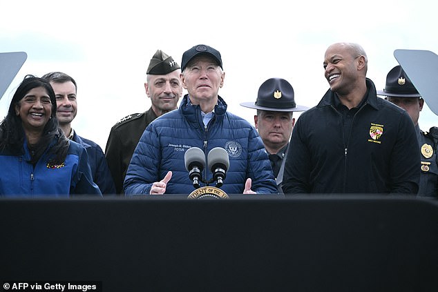 ‘It’s my intention that federal government will pay for the entire cost of reconstruction in that bridge. I expect the Congress to support my effort this is going to take some time. The people of Baltimore can count on us to stick with them at every step of the way,’ Biden said at the time.