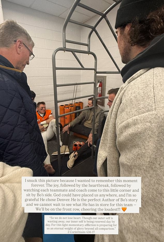 Bo Nix’s wife has shared a heartbreaking behind-the-scenes picture of the Denver Broncos quarterback after learning his season had finished moments after the biggest win of his career.