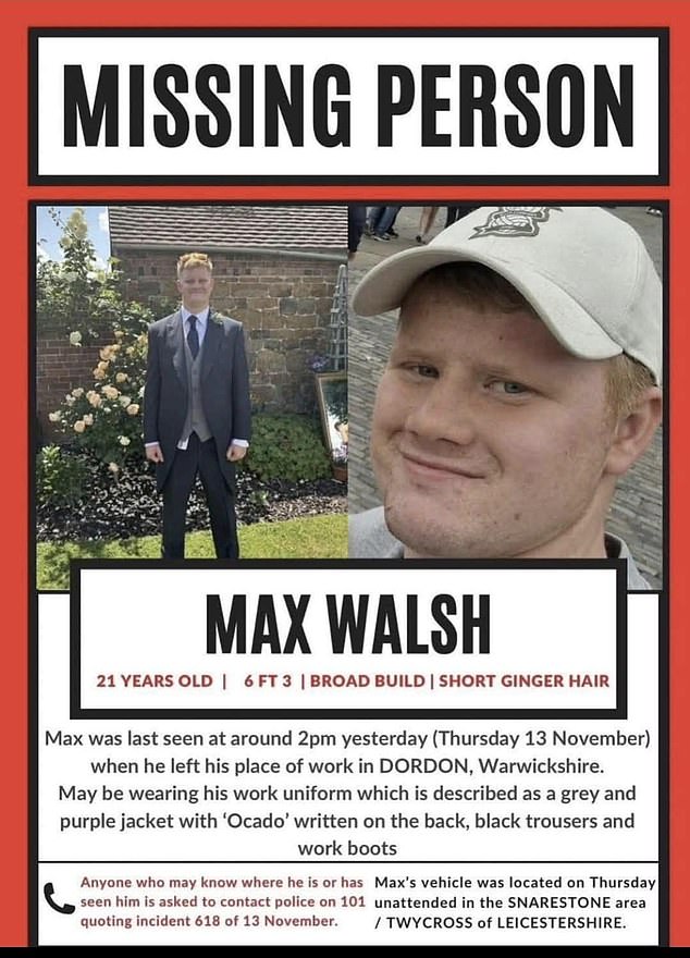 Later the same day, police made an urgent appeal for help finding Mr Walsh, who had been wearing his Ocado uniform at the time of his disappearance.