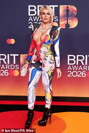 Tallia, 27, showed off her incredible figure in a skin-tight catsuit. However, her cartoon inspired print failed to hit the mark for the biggest night in music in the UK.
