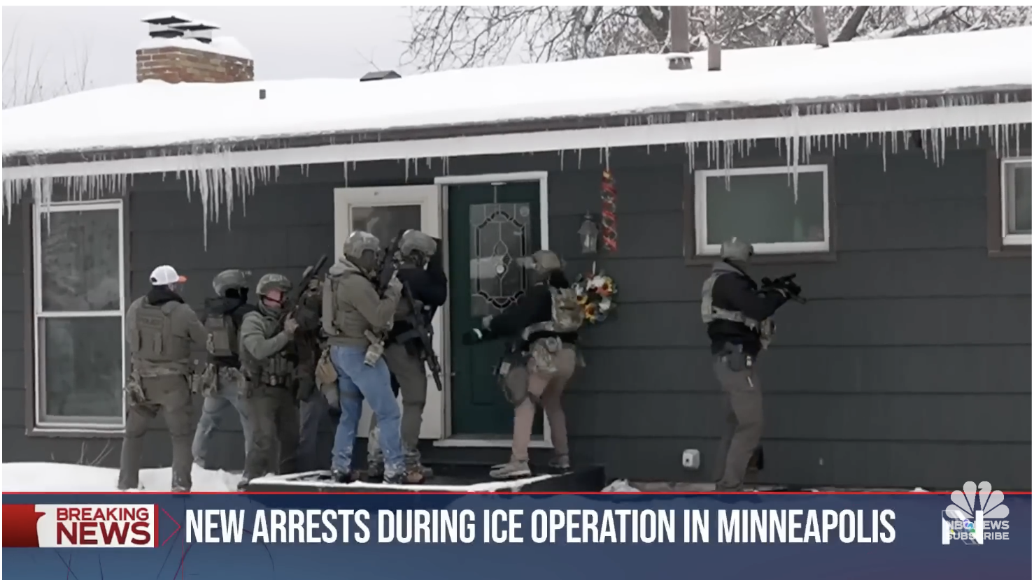 Department of Homeland Security officers surround the home of a suspected criminal illegal alien in Minneapolis.