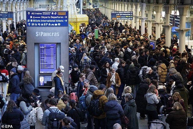 Eurostar passengers wait for train services to resume at London St Pancras station yesterday