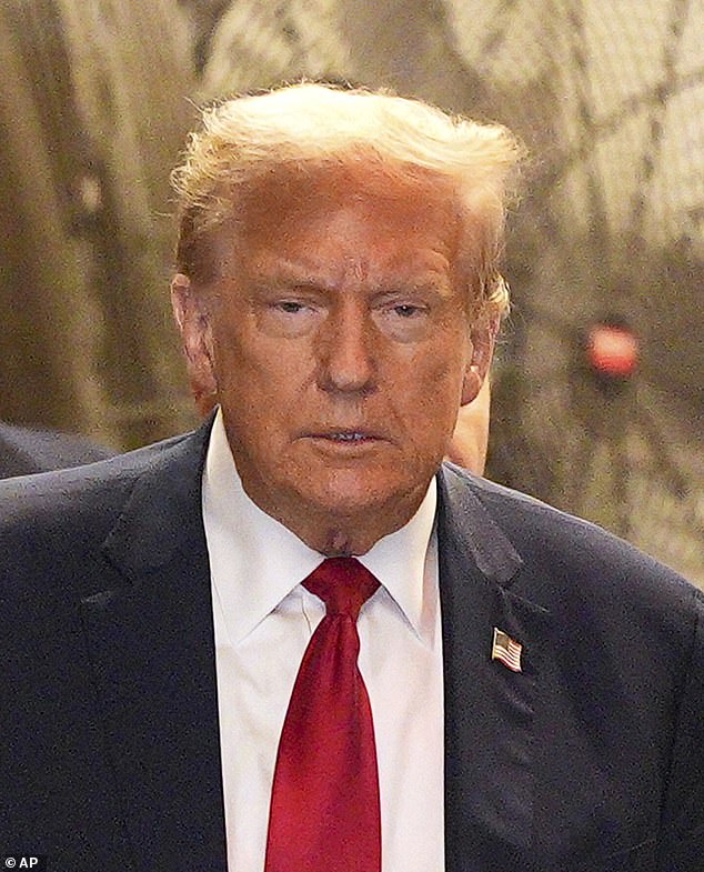 Former President Donald Trump is photographed Tuesday in Manhattan Superior Court during the Stormy Daniels hush money trial. A state investigator said the former president would be considered an ‘unindicted co-conspirator’ in the Michigan fake electors scheme