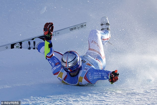 Pinturault’s skis detached, leading to him tumbling and sliding for 50 meters (over 160 feet)