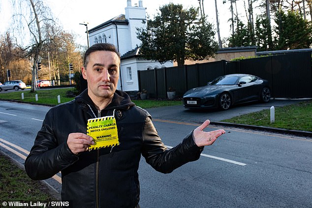 David Miller, 49, was furious after finding a parking ticket on his Jaguar F-Type, which he had left on the six metre long tarmac outside the gate of his home in Chester, Cheshire.