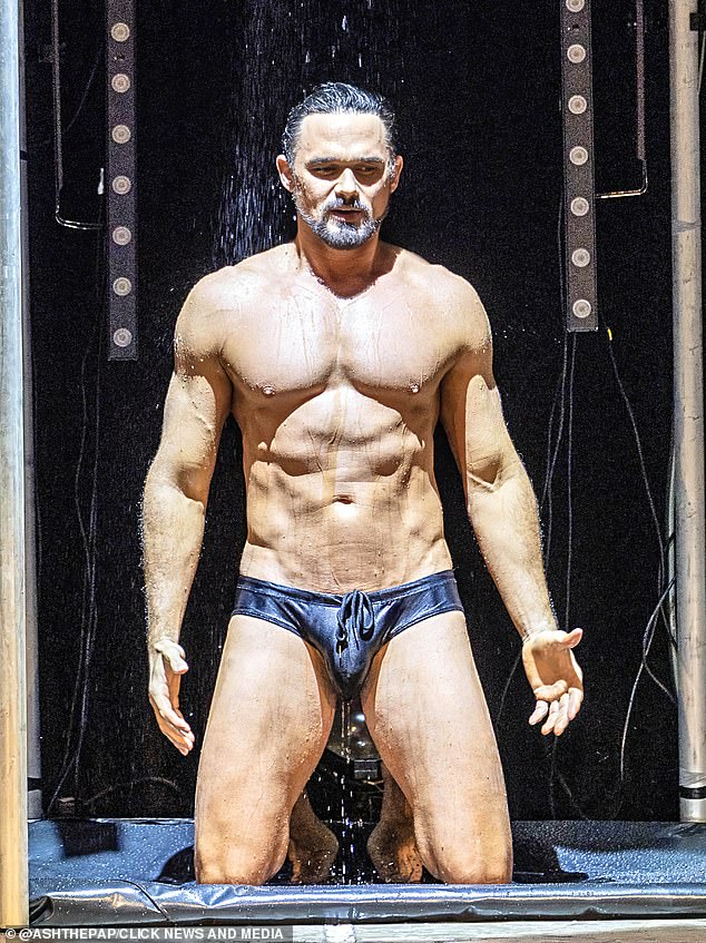 Bare bottoms appeared to be the order of the day as Gates and his semi-naked co-stars took to the stage in leather chaps