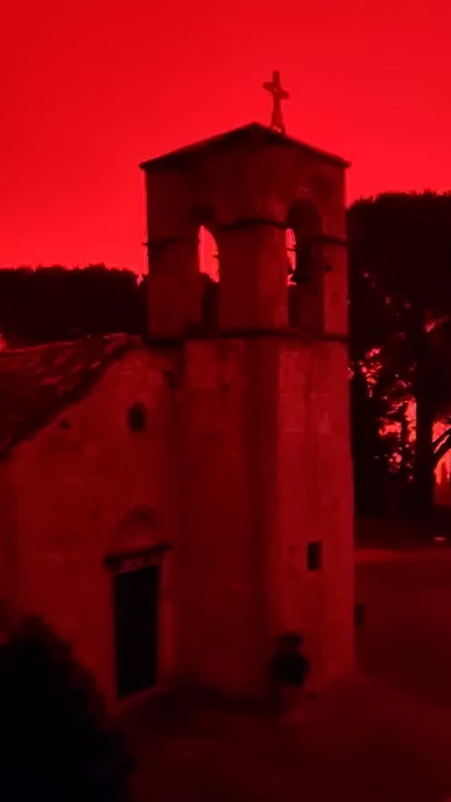 A deep haze has left the sky coloured in a dark orange causing severe visibility issues