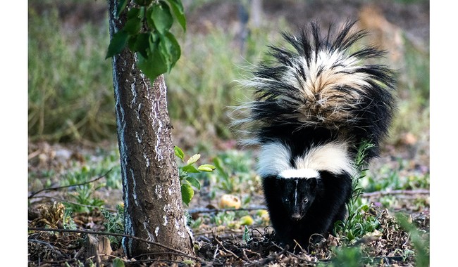 The perpetrators? Female striped skunks rebuffing the “unwanted advancements” of males during their mating season, which lasts from January through March. Skunk babies are typically born by May.