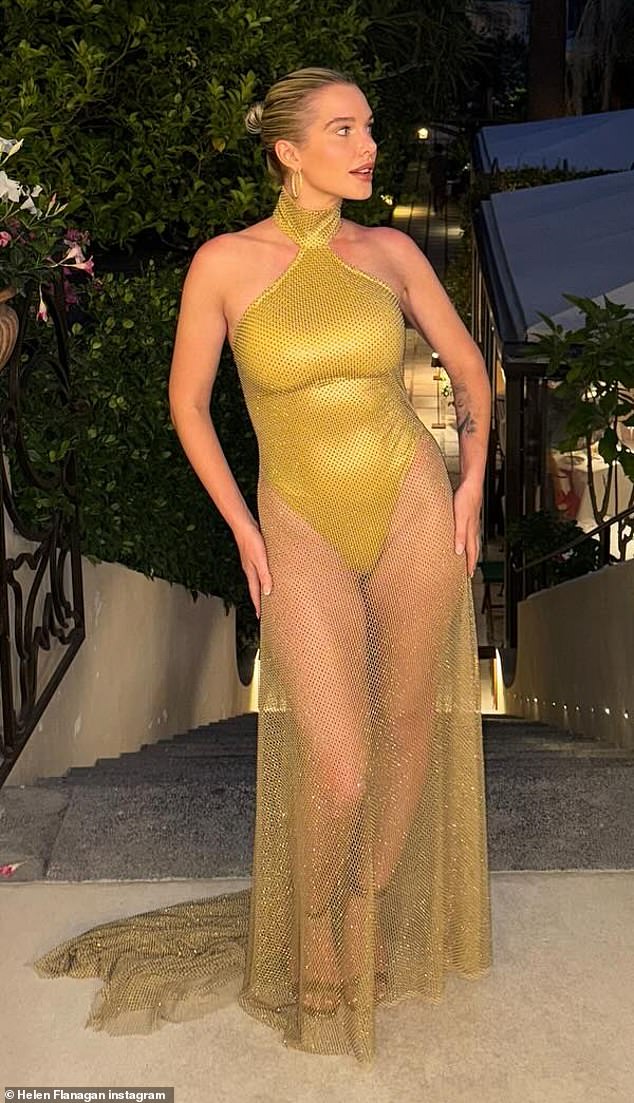 Helen wrote in the caption alongside the dup of racy snaps: ‘My 35th bday dress @joshbirchjonesofficial. Queen Leo energy. Loved my 30s so far so much feel very blessed. I got my beautiful dream boy Charlie…