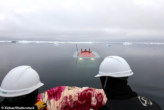 China’s research submarines traversed thousands of feet beneath the ice for the first time over the summer. Its manned deep-sea submersible Jiaolong is pictured returning to the surface from the bottom of the sea in the Arctic Ocean on August 6