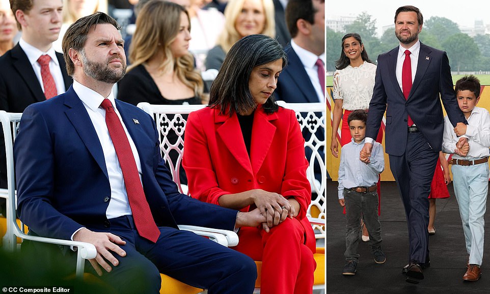 ‘Usha’s closer to the priest who baptized me than maybe I am. They talk about this stuff,’ he concluded. ‘My attitude is, you figure this stuff out as a family, and you trust in God to have a plan.’ The couple met while they were both attending Yale Law School and married in 2014 in dual Christian and Hindu ceremonies. Usha has publicly stated that she encouraged her husband to reconnect with his Christian roots during their marriage.
