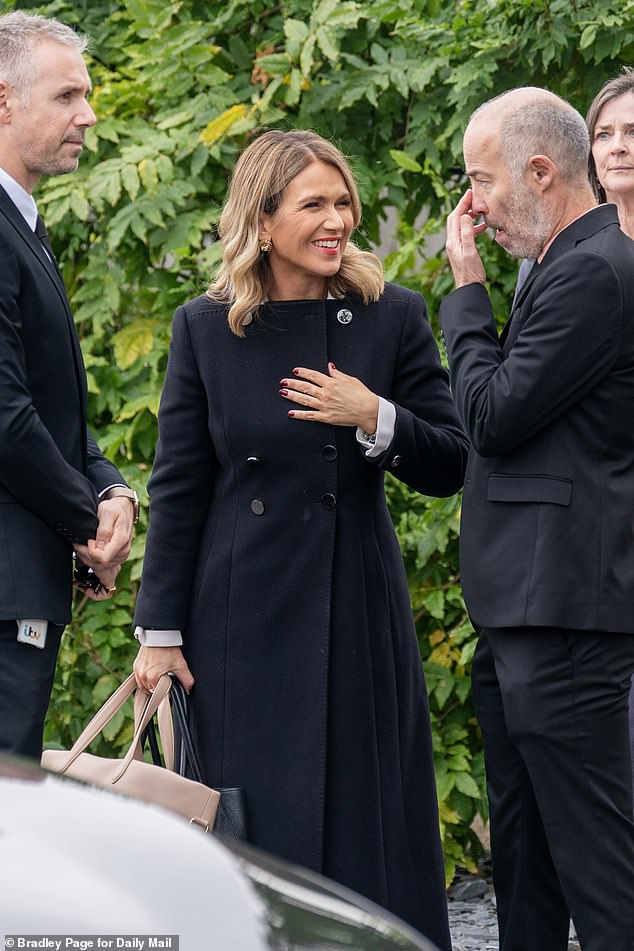 Good Morning Britain presenter Susanna was seen chatting outside the church with other attendees.
