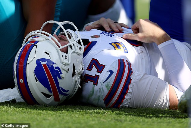 He appeared to reach for his knee before hobbling off the field, only to return for Buffalo’s subsequent possession.