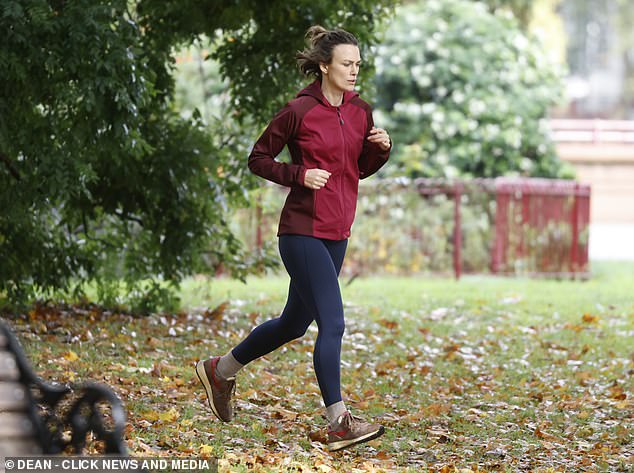 The Bend It Like Beckham actress paired the suede trainers with navy leggings and a burgundy hoodie.