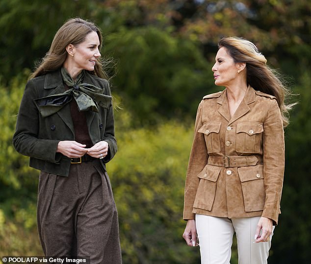 The Princess of Wales put on a stunning display in autumnal colours as she chatted with Melania Trump on the Windsor Estate today