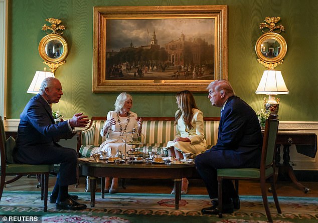 Earlier in the day, Charles and Camilla had been formally welcomed by Trump and the First Lady at the White House, where the two couples exchanged warm greetings before retreating inside for private talks over tea.