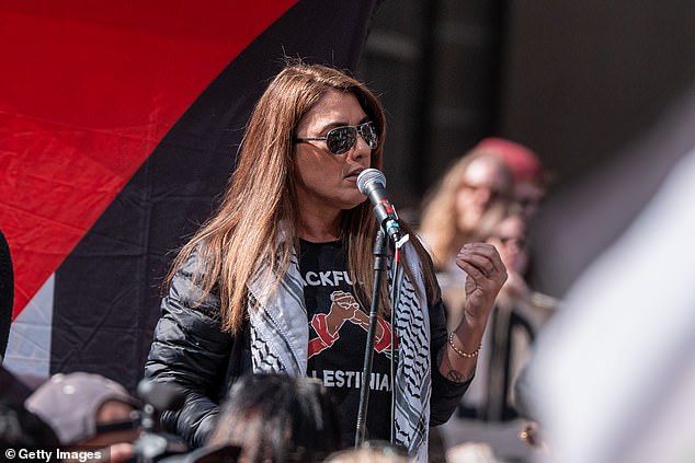 Senator Lidia Thorpe has threatened to ‘burn down’ parliament amid nationwide pro-Palestine protests. She is pictured speaking to demonstrators in Melbourne in August