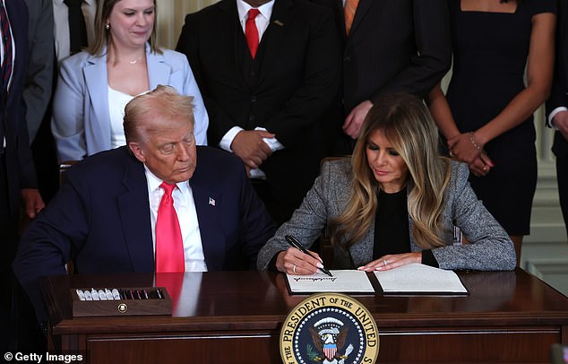 The Take It Down Act was championed by the first lady and provides protections for victims of revenge porn. After Trump signed it during a Rose Garden event this spring, he invited his wife to place her signature on the document, as well.