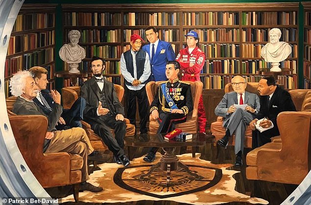 In May, he called the portrait a ‘weird painting of dead people’ that he claimed is meant to show him as a ‘student’ learning from the others.