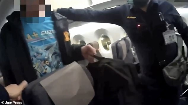 He had allegedly been shouting and swearing at other passengers, and was also seen vaping in his seat, witnesses claimed.