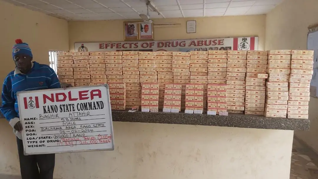 Announcing other interceptions and seizures made by the NDLEA, Babafemi said, “Not less than 187kgs of same substance were seized by operatives at Sapele road, Benin, Edo state while in Kano, NDLEA officers on Monday 5th February arrested 58-year-old Bashir Attahir in Bachirawa area of the state with 216,000 pills of tramadol 250mg. Another suspect, Ejike Moses Nmenme, 47, was nabbed the following day Tuesday 6th Feb with 25,190 capsules of tramadol and different quantities of Rohypnol and codeine syrup along Emir road, Sabon Gari area of the city while the duo of Yusuf Abdullahi Musa, 35, and Yusuf Musa, 28, were nabbed at Gadar Tamburawa, with 1,000 ampoules of tramadol injection on Thursday 8th February.