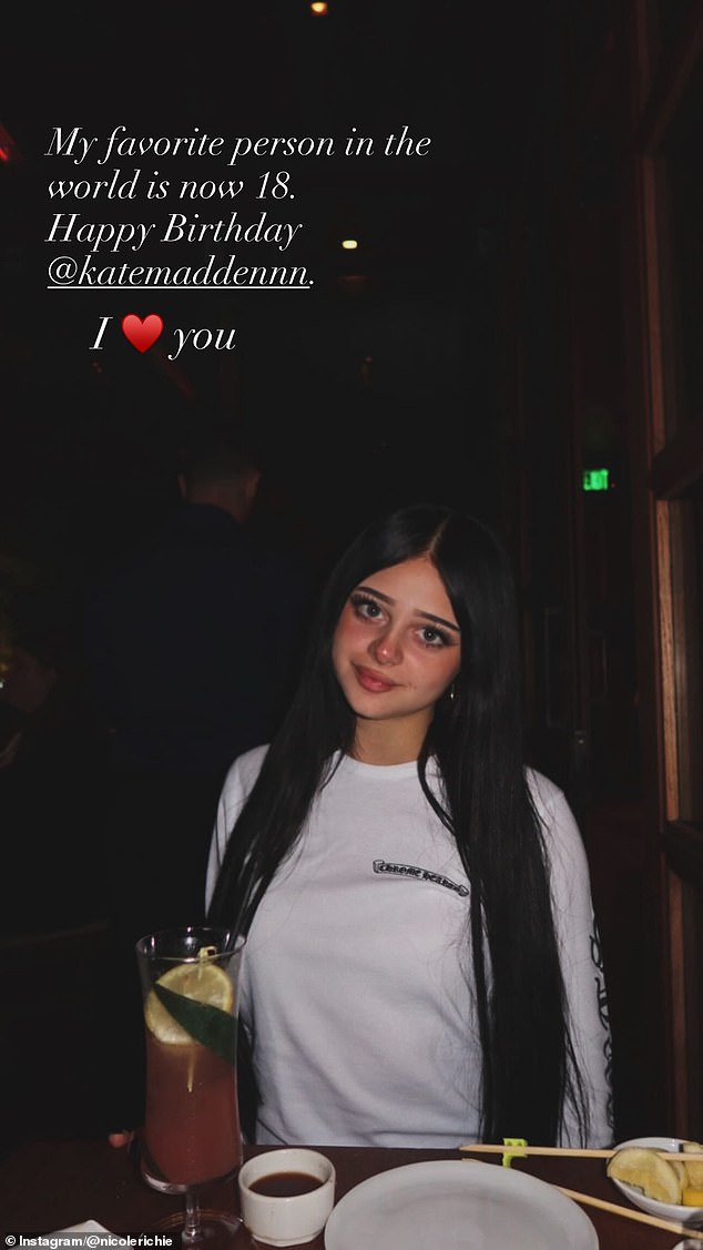 ‘My favorite person in the world is now 18. Happy birthday @katemaddennn. I (heart emoji) you,’ Nicole wrote in the photo.
