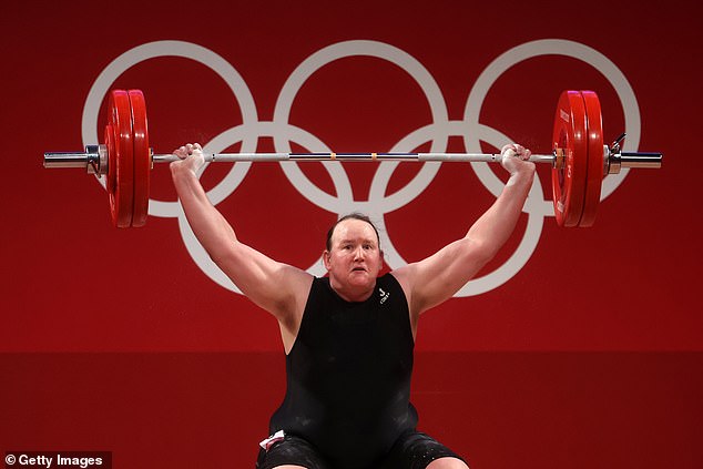 Transgender athletes are now blocked from taking part in women’s sports at the Olympics (pictured: Laurel Hubbard in the Tokyo Games in 2021)