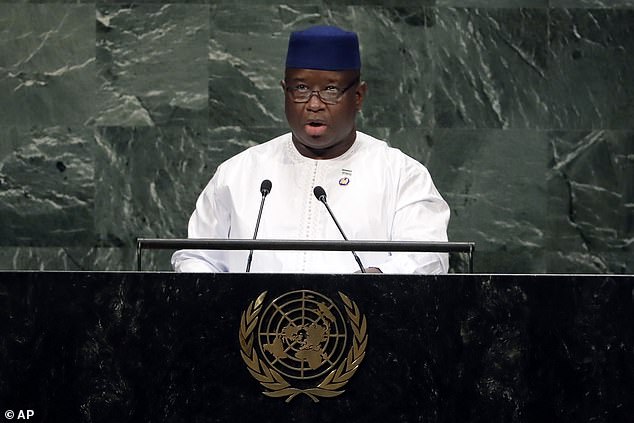 In a nationwide broadcast yesterday, Sierra Leone’s President Bio said: ‘Our country is currently faced with an existential threat due to the ravaging impact of drugs and substance abuse, particularly the devastating synthetic drug kush’. President Bio pictured in 2018