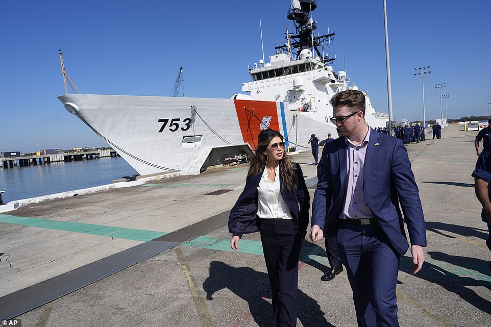 White House press secretary Karoline Leavitt ignored a question about the Coast Guard story during her Thursday briefing, moving on quickly after the same reporter had asked her about President Donald Trump calling a journalist ‘piggy.’ The policy change attracted fury online. ‘A swastika is a hate symbol, plain and simple. If Kristi Noem thinks that’s up for debate then she has no business overseeing our Coast Guard. We should be doing everything we can to combat rising antisemitism. Why on earth would anyone in DHS make this change?’ commented Democratic Nevada Senator Catherine Cortez Masto. The Department of Homeland Security oversees the Coast Guard during peacetime, meaning Noem is in charge.